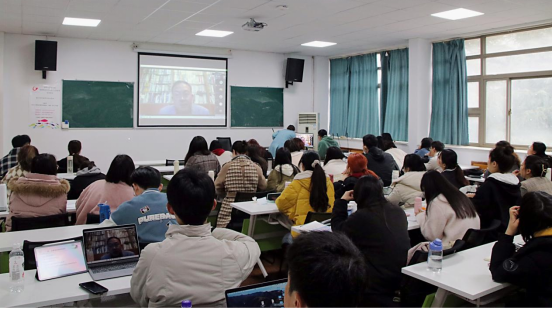 讲座开始前,张泉泉老师致辞欢迎,并向同学们详细介绍了胡教授,她说胡老师是真正的读书人,常年坚持开读书会,曾经是名师的高徒,现在已经成为高徒的名师。她评价胡教授的讲座“一场高浓度的学术讲座,就如同一场高浓度的学术钙片”,启示同学们从即将开始的讲座中充分汲取营养。