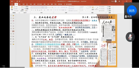 “改革没有休止符,新闻永远在路上!”,“农业也要创名牌”,“如果不能与百姓一样忧患着,欢乐着,那样什么样的报道也做不好!”隔着屏幕,倾听坚定有力的声音,同学们深刻感受到刘杰社长对新闻事业的坚定与动容。刘杰社长将晦涩难懂的理论总知识转化成简明易懂的分论点和典型案例的结合,将“理财之政”“优质农业”“持续化探索”三个大方面叙述得绘声绘色,同学们也感触颇深,在评论区发表自己的感想。