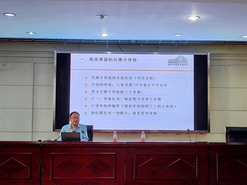 随后,胡教授对根深蒂固的反媒介传统进行系统地论述。他从中国古人反对“媒介的中介化”的传统谈起,接着介绍并分析了西方反媒介传统的三大来源。他提出进入到近现代以后,反媒介传统变得更加复杂。