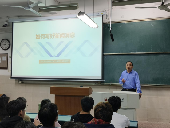 讲座中,刘杰指出写好新闻消息是编辑记者的基本功,并提出几点建议:一是学习和研究新闻消息的基本特征知识点,通过具体报道素材详细介绍如何写好一则好新闻;二是学习和研究新闻消息根脉相通的优秀传统文化,强调新闻采写是对中国传统文化的继承和发展,鼓励同学们多读古文经典浸润深厚学养;三是多思新闻消息采访写作上的责任担当,包括思新闻工作者的社会责任、思工作性新闻消息的出新出彩、思新闻报道的社会影响力。刘杰将新闻知识和具体实例相结合,使同学们受益匪浅。
