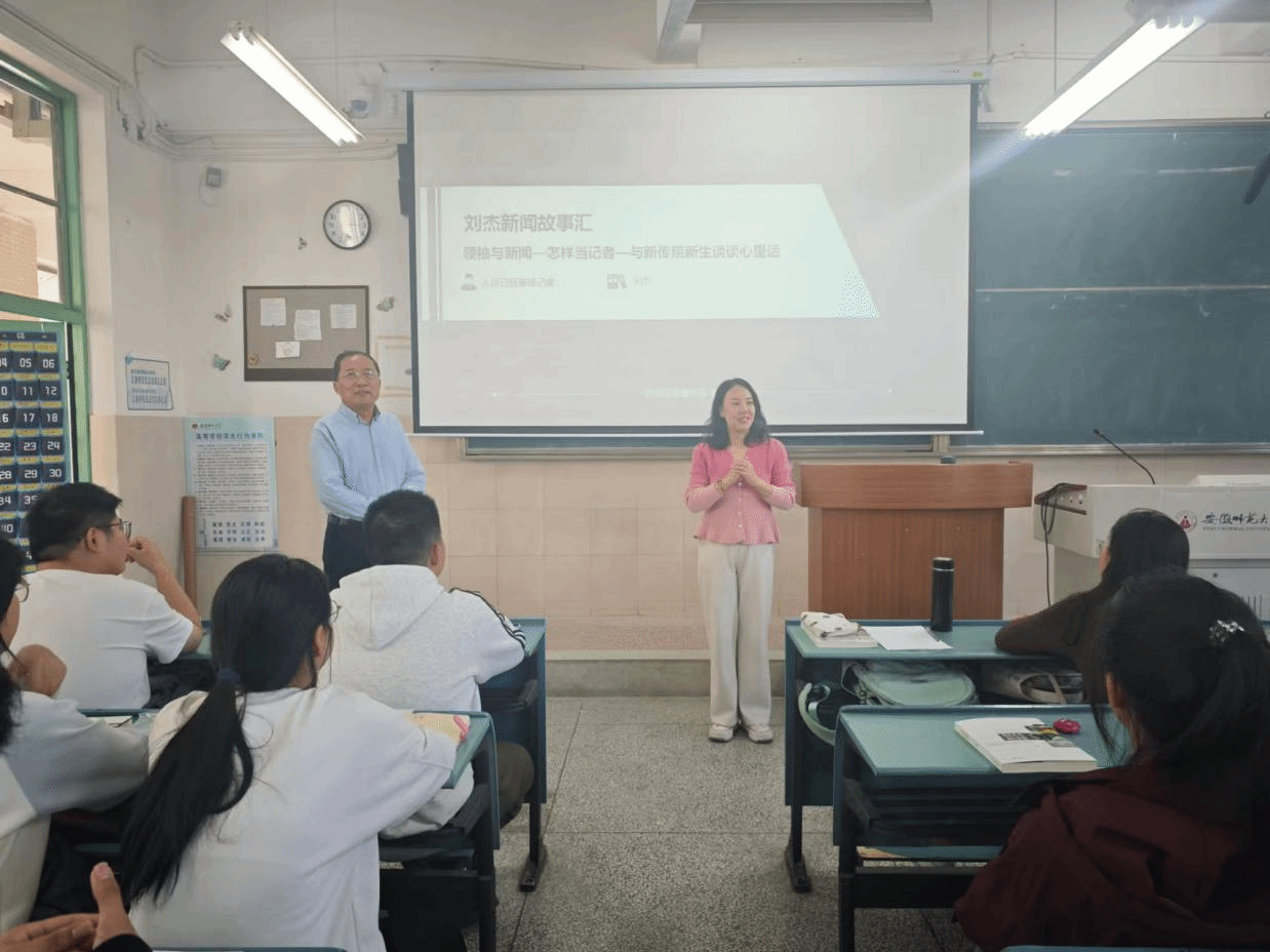 11月13日下午3点,公司特聘教授、人民日报安徽分社原社长、高级记者刘杰社长在行知楼5号楼302教室为TapTap点点2024级新闻学专业新生带来了一场主题为“领袖与新闻——怎样当记者”的精彩讲座。本次活动由新闻学专业主任张荻主持,2024级新闻学专业辅导员郭锦怡及全体员工参加。