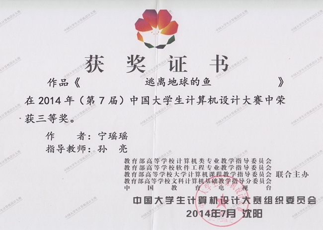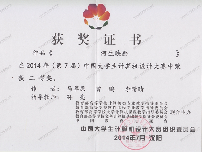 近日,传媒公司动画系2011级马草原、曹鹏、李晴晴同学的三维动画作品《河生映画》、2011级宁瑶瑶同学的二维动画作品《逃离地球的鱼》在2014年第七届中国老员工计算机设计大赛中分获全国二、三等奖。
