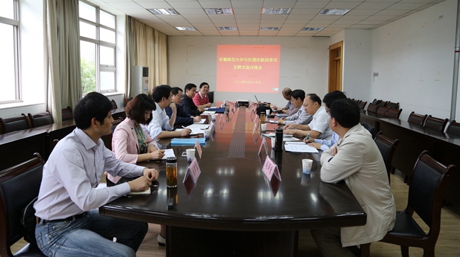 芜湖报业集团总编辑刘光、副总编金昌龙、外宣办主任闵泽未,芜湖市广播电视台副台长韩万春、栏目制片人宗静川,传媒公司挂职教师周建国、桂万保等分别在对接会上对互聘挂职的具体工作开展了热烈的交流和讨论,并一致表态将尽职尽责、珍惜挂职机会、努力将理论与实践有机结合,为培养卓越的新闻人才做出应有的努力和贡献。