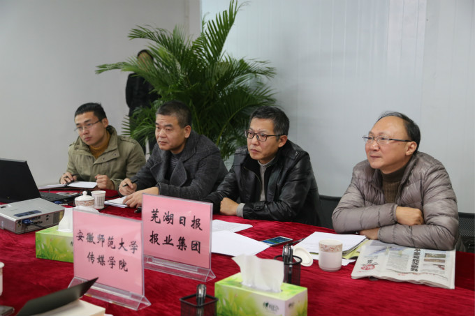 随后,校媒双方就“部校共建下的校媒整合发展”召开了交流会。芜湖日报报业集团副总编辑柯南、《金周刊》主编阚东华和传媒公司新闻系主任马梅、挂职《金周刊》总编助理的摄影系李化来老师先后发言,分别从传媒业界、学界角度畅谈了校媒整合发展的思路。