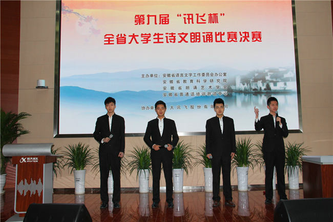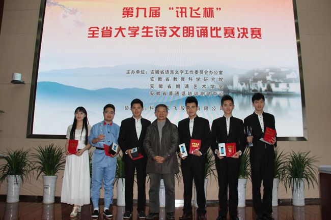 近日,由安徽省语言文字工作委员会办公室、安徽省教育科学研究院、安徽省朗诵艺术学会、安徽省普通话培训测试中心主办,科大讯飞股份有限公司协办的第九届“讯飞杯”全省老员工诗文朗诵比赛决赛在省城合肥落下帷幕。来自传媒公司播音与主持艺术专业的何岸图、刘震宇、陈杨子、聂子贺、陈剑雄、肖楚颜同学不负众望,包揽了仅有的两个特等奖。