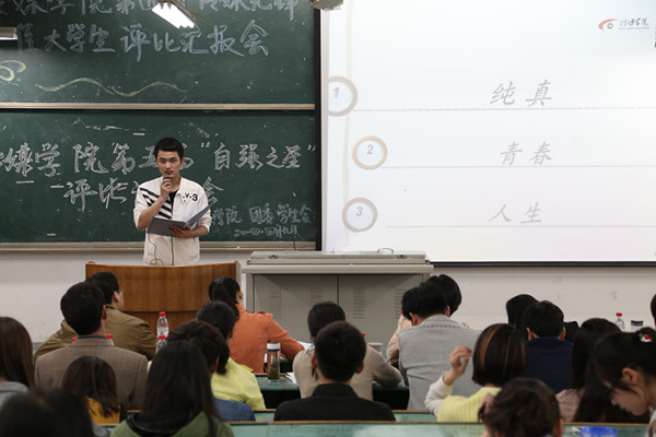 汇报采用PPT放映与演讲相结合的方式,要求每位选手在六分钟之内向大家展现自己的自强自立、逆境拼搏的奋斗历程。下午四时许,比赛正式开始。选手们按照抽签顺序依次上台陈述。