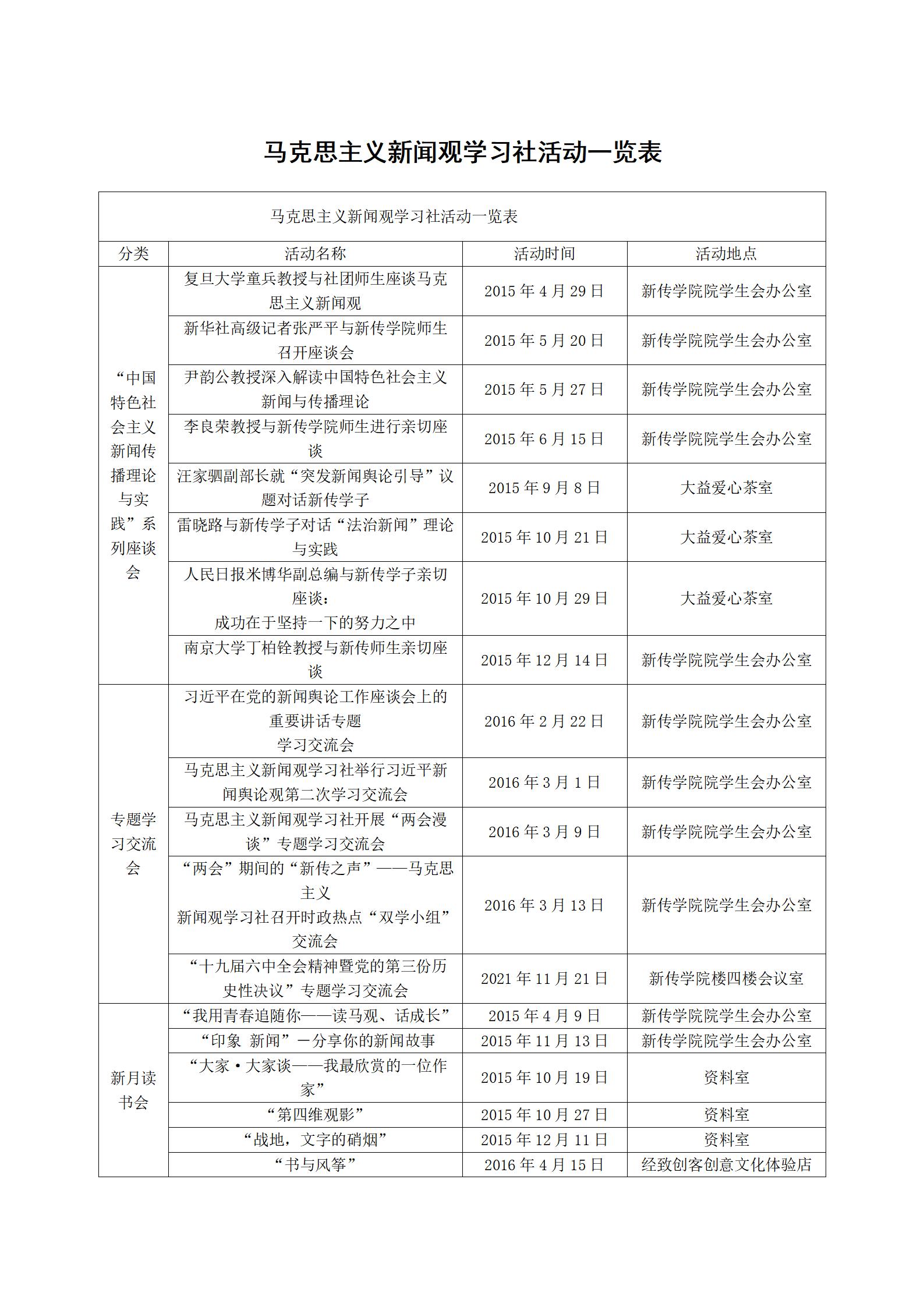 马克思主义新闻观学习社活动一览表.docx