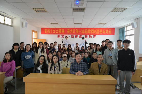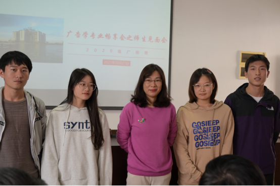 会议最后,2020级广告学专业的全体同学与导师合影留念。会议结束后,各组同学也纷纷聚集到各自的导师面前,和导师面对面交谈。
