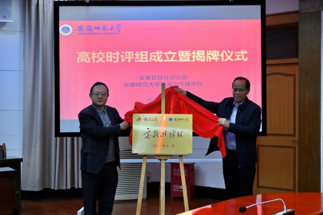 据了解,早在去年末公司2019级辅导员马星宇就与安徽日报评论部主任曹显钰共同谋划创建高校老员工时评组加强院媒协同育人, 并于2021年1月由马星宇老师在2019级新闻学遴选部分员工成立组建了我省首个老员工高校时评组,并逐步形成了员工自报选题-校内老师审核指导-日报老师编审发稿的创作运营模式。截至目前时评组师生成员已在《安徽日报》思想周刊版面和声度专栏发布时评47篇。此后省内阜阳师范大学、淮南师范公司纷纷与安徽日报社开展了此种合作。
