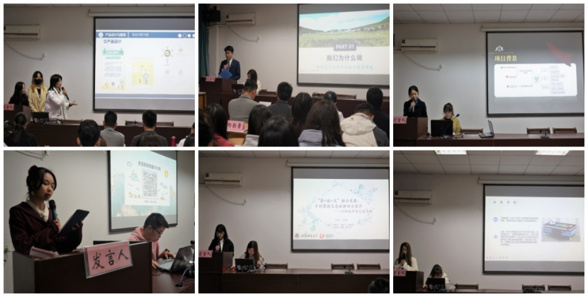 在前期会评基础上产生的13个团队项目参加了参加本次答辩会。其中2020级播音与主持艺术专业的白雪松汇报的项目《创享文旅—乡村特色产业文化融合公益助农项目》,以岳西县石关乡的特色产业茭白为例,通过产品设计、宣传策划等方式宣传打造品牌,以期进一步带动乡村特色产业和文旅事业发展。2020级网络与新媒体专业的张悦悦汇报的项目《IP赋能乡村振兴,设计培育美丽经济》详细介绍了团队IP设计砀山梨,借鉴徽州文化,以砀山梨为创作线索,进行头饰、服饰、颈饰等衣着特色设计,在每个设计背后伴有徽州特色文化建筑马头墙,充分展现安徽农产品特色。地球日记团队代表高鑫爽汇报的项目《地球日记—自然研学与自然博物馆一体化运营》,从中小员工课外时间得到进一步解放,家长教育观念转变,研学产品开始变得火热入题,展示了团队的现有成绩,充分展现了团队的创业实力与优异成果。其他各团队负责人也以高度凝练的语言、图文结合的展示深入浅出地展示了团队的创意想法、创新做法。每个项目汇报结束之后,评委老师针对不同团队提出了相应的答辩问题,也指出了项目的不足之处和需要改进的地方。