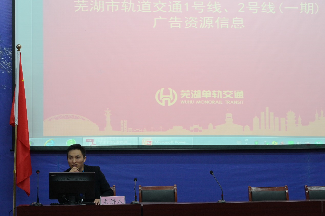 随后,他向大家详细介绍了芜湖市轨道交通1号线、2号线(一期)站房以及车辆上的广告设计,对闸门广告、列车广告、车站广告、屏蔽门广告、站台广告等广告载体分别解读。他认为:根据不同的区域和作用设计了不同的广告内容,保证乘客有效观看接收广告信息的同时也保证了一定的舒适度。并且根据客流量的大小选择性的放置LED大屏,这能够有效节约成本。