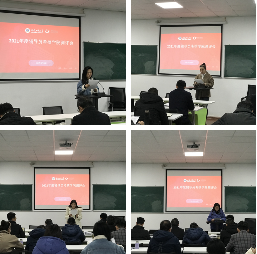 12月20日下午,公司举行2021年度辅导员年度工作述职考核测评会,全体院领导班子成员、教授委员会负责人、部分专业负责人参与评议。公司9名专、兼职辅导员从带班带生思路与实践、育人举措与成效、个人成长与发展等方面全面回顾、汇报了一年来工作的成绩与不足。与会人员本着公平、公正、客观的原则,对照公司辅导员考核文件评议指标对所有辅导员老师一一进行了测评打分。公司也对本年度辅导员考核工作做出部署,指导辅导员认真学习考核文件精神,切实做好年度考核工作,在考核中总结经验与教训,更好做好立德树人根本任务。