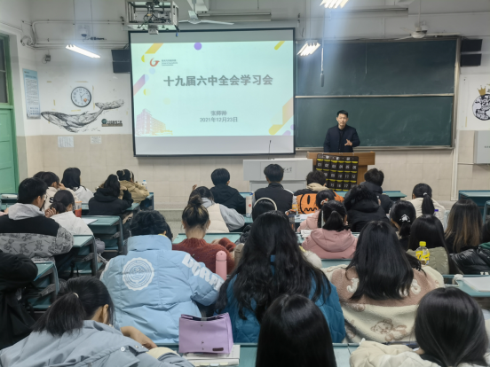 张师帅总结了今年国内总体形势,新冠肺炎疫情依旧严峻,党史教育学习大会、脱贫攻坚表彰大会、中国共产党成立100周年大会、党的十九届六中全会等重大会议陆续召开,中国共产党带领中国人民坚定前行,创造了一个又一个的历史奇迹。课上,张师帅详细介绍了党的十九届六中全会的会议情况、《决议》的基本框架和主要内容,引领同学们深刻把握党的十九届六中全会的核心要义和实践要求。