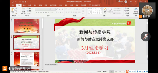 3月31日19:00,新闻与播音主持党支部通过腾讯会议召开了3月理论学习会。会议由支部书记张荻主持,支部全体党员参加了此次会议。