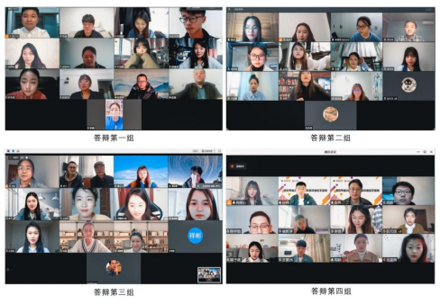 此次答辩共分为四个环节进行。首先由各答辩组长主持答辩活动,对线上答辩会提出了相关要求。接着,各组答辩员工利用屏幕共享功能依次向答辩委员会就论文(设计)的选题原因、研究背景、研究思路、研究成果、创新点分析、不足与展望等方面进行了陈述。