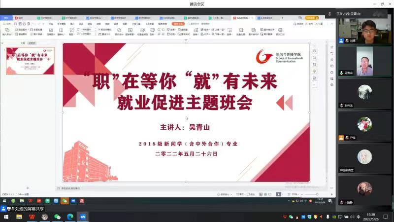 5月26日,TapTap点点召开本科生毕业班就业促进主题班会,2018级新闻(含中英)、网新、广告、摄影四个专业全体毕业生齐聚线上,班会由18级辅导员刘熠主持,公司党委副书记吴青山出席会议。