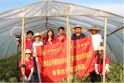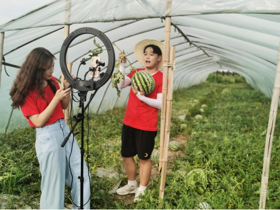 除了瓜田直播外,实践团队还尝试了桃园采摘、荷塘直播等,在后续的实践过程中也将继续深化“互联网+农产品”运营模式,运用电商助农、文旅兴农等方式精准服务当地乡村振兴。微信小程序电商平台运营、短视频推广宣传、直播带货助农在这个小镇里正循序渐进,稳步上演,而青年学子在实践中增长才干、磨炼意志的实践也将持续下去。