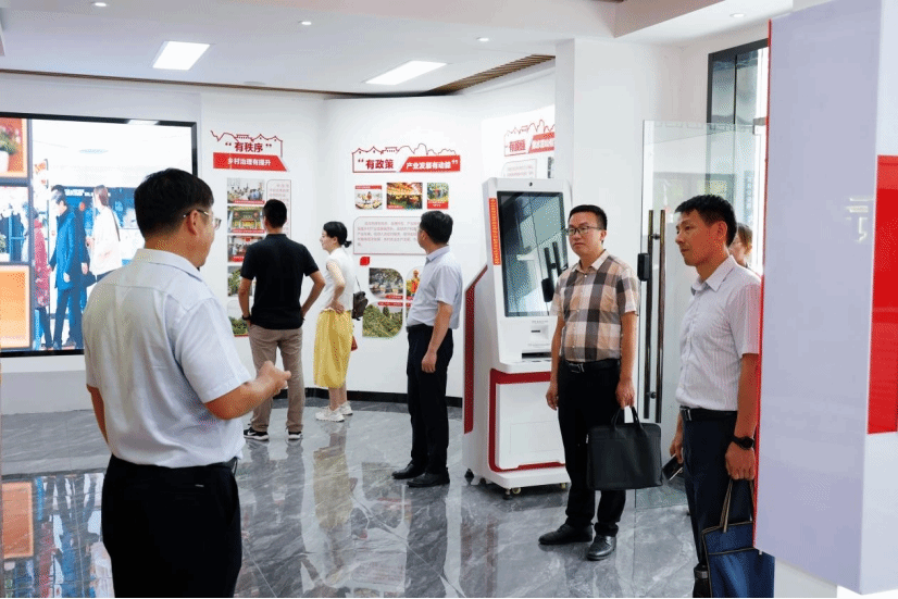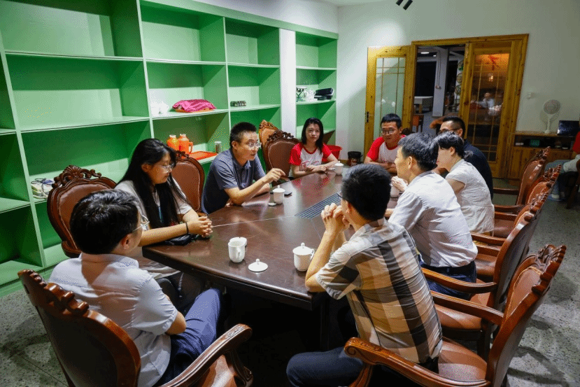正在深渡镇大茂社区调研的歙县县委副书记、县长汪凯与张师帅一行交流沟通老员工社会实践工作并与团队师生合影留念。当晚,歙县县委常委、深渡镇党委书记刘和仙专程来到团队驻地,与公司领导老师亲切交谈,对老员工社会实践活动助力乡村振兴给予肯定。