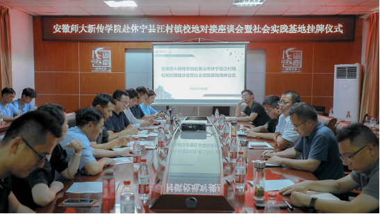 会上,江向荣代表休宁县委、县政府向公司师生来休宁实践、洽谈表示热烈欢迎和衷心感谢,他希望同学们能够聚焦汪村历史文化、聚焦汪村红色故事、聚焦汪村乡村振兴,以此来助力汪村发展。舒蔚剑向师生们详细介绍了汪村镇的地理位置、特色资源、生态建设,并指出“人才振兴是五大振兴中最重要的环节”,他充分肯定了时间团队的实践成果,并希望师大的学子们能够常来汪村,常驻汪村,俯下身子、扎进泥土,用笔尖、用镜头记录汪村的巨大变化,扩大汪村的宣传力度。