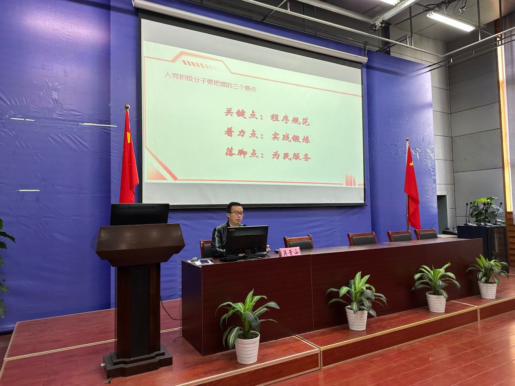 公司党委副书记吴青山为学员们详细解读了公司发展党员工作实施细则。他指出,入党积极分子要把握好组织入党程序规范这个关键点,要强化好实践锻炼这个着力点,要践行好为民服务这个落脚点,并告诫同学们一定要脚下有路,眼里有光。在谈“思想入党”的问题上,他结合自身的个人修养要则与同学们共勉,并希望同学们以勤学以提高政治判断力、以善思以提高政治领悟力、以笃行以提高政治执行力,争取以自身优异表现和良好的党性修养早日加入党组织。