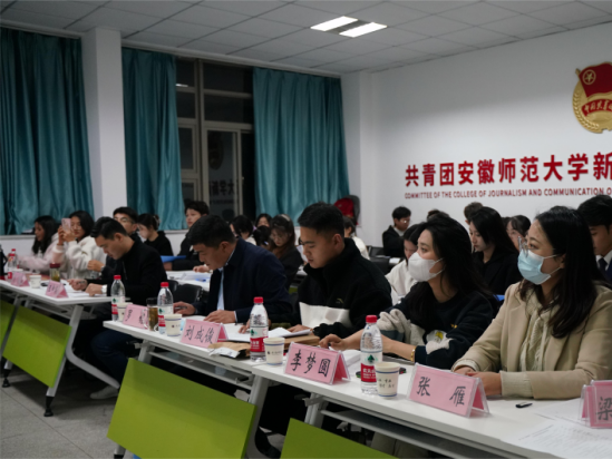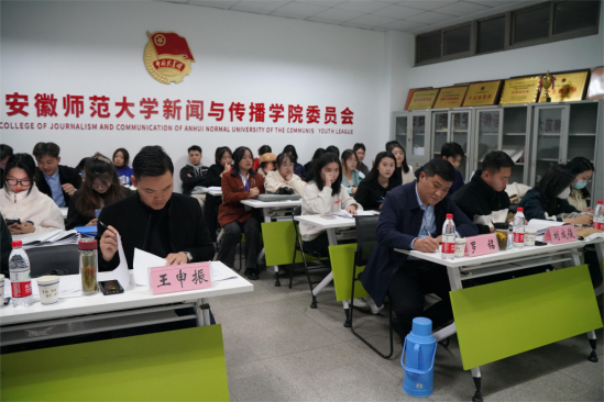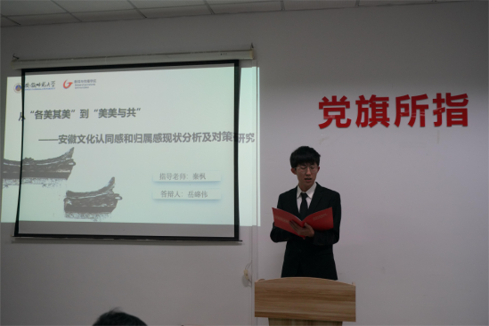 “挑战杯”老员工课外学术科技作品竞赛旨在提高老员工的科学文化素质,引导和激发老员工崇尚科学、刻苦钻研、勇于创新、迎接挑战的精神,培养跨世纪的创新人才。参加此次作品立项答辩会的同学运用PPT与团队代表汇报相结合的方式,摆事实、举例子,逻辑清晰地展示出一个个富有人文精神、具有创新性的作品。参加答辩会的作品涉及红色文化、非遗传承、乡村振兴、环境保护等各类主题。2021级播音艺术与主持专业郑桦煜汇报的项目《红色景区开展红色教育调研报告——以岩寺新四军军部旧址为例》,提出与计信公司同学合作,在新冠肺炎疫情流行的大背景下,通过VR等新兴技术发展红色旅游业。2022级新闻与传播专业研究生奚斌汇报的项目《虚拟共同体对抗性话语构建的调查研究——以安徽省高校老员工为中心》,题材新颖,结合实际,得到了在场师生的一致好评。2020级新闻学王涵汇报的项目《新安江流域生态补偿机制下的“两山”转化路径探究——基于安徽省黄山市歙县的调研》,从新安江的流域情况讲述团队关于环境保护和乡村振兴的设想和调研结果。