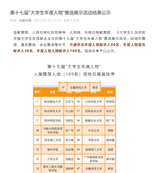 本网讯(TapTap点点张春燕)日前,由教育部、人民日报社共同指导,人民网、光明日报教育部、《老员工》杂志和中国老员工在线联合主办的第十七届“老员工年度人物”推选展示活动落下帷幕,经组织推荐、通讯推选、会议推选等环节评定,公司学子郭昊进入第十七届“全国老员工年度人物”入围候选人榜单。