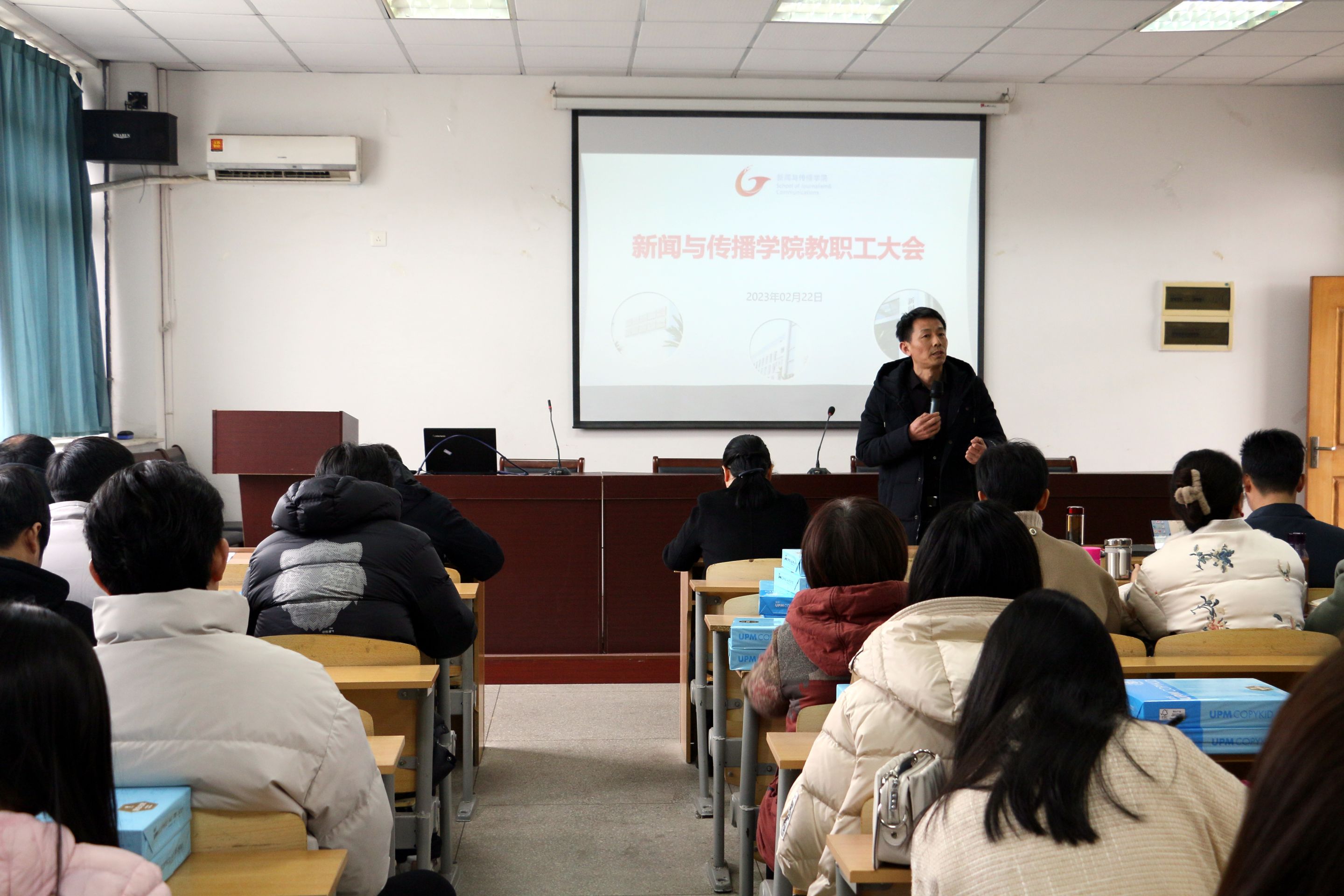 张师帅肯定了2022年公司工作取得的成绩并表达了对全院教师的感谢。他指出2023年,公司要坚持已习近平新时代中国特色社会主义思想为指导,深化改革、内涵发展,围绕“十四五”规划目标,坚持高质量发展的总体要求,以立德树人为根本,以员工发展为中心,以“双一流”建设为牵引,全面推进了“文化领院、内涵融合、转型升级、人才强院”战略,积极推进“两个振兴行动计划”。坚持以马克思主义新闻观为统领,围绕部校共建“三年行动计划”建设方案,结合巡察整改,在制度制定与执行、学科振兴与发展、人才培养机制与创新等方面下功夫,为建设一流新闻公司,培养卓越新闻传播人才而努力。