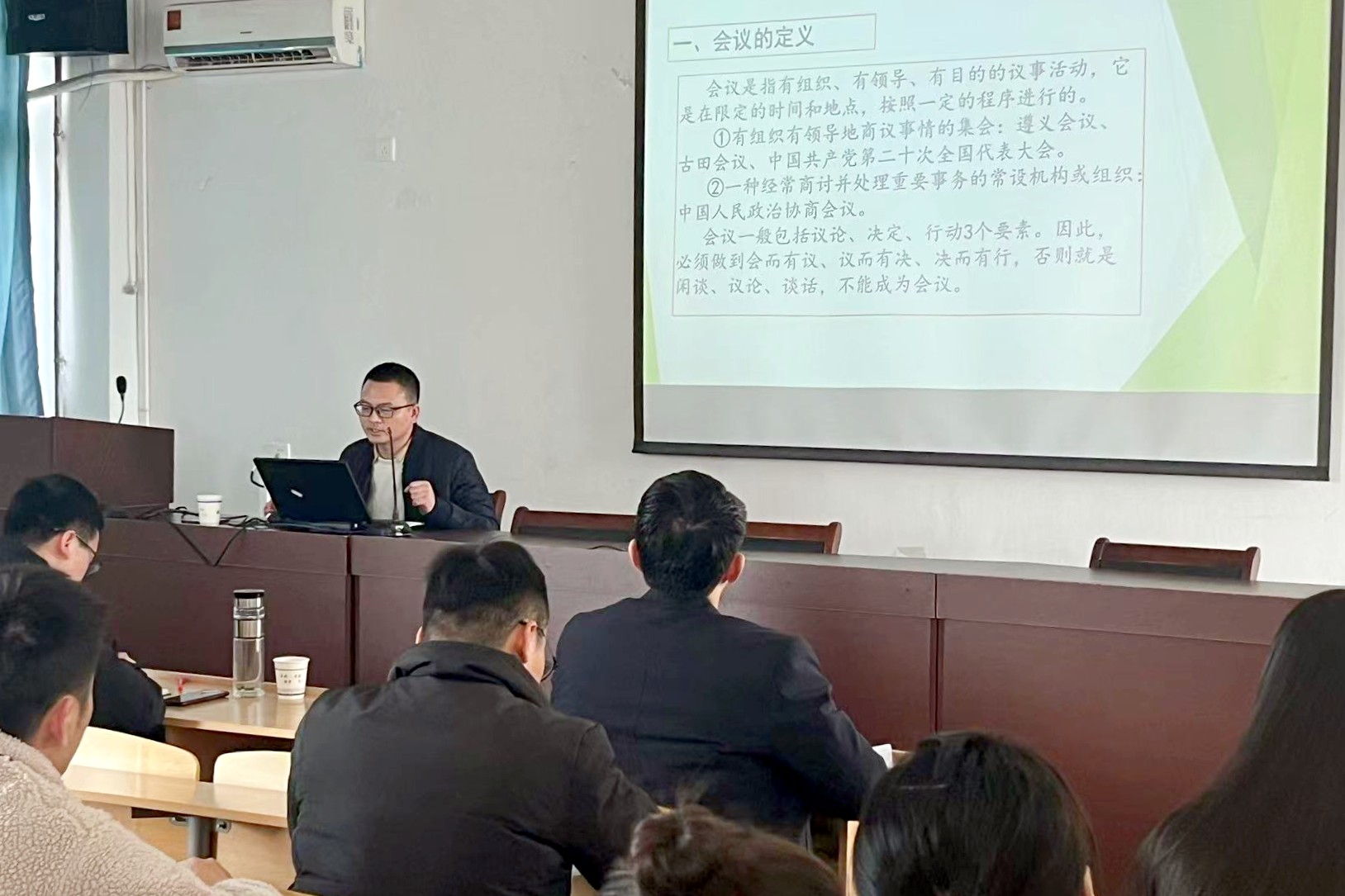为提升公司行政人员业务能力,3月2日下午,公司邀请校办综合科科长熊伯能为公司行政人员开展专题培训。公司在家班子成员、各科室秘书、专兼职辅导员和部分员工干部参加了培训会。本次培训会由党委副书记吴青山主持。