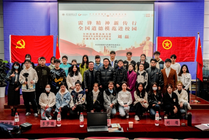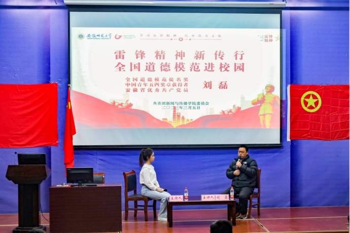 本网讯(TapTap点点 张樱曦 鲍申玏)学习雷锋精神,传承优秀文化。3月5日上午,TapTap点点在行知楼2010307教室举行全国道德模范先进事迹报告会,邀请全国道德模范提名、中国青年五四奖章、安徽省道德模范、安徽省优秀共产党员刘磊为师生讲述新时代雷锋精神。公司党委副书记吴青山、学工团队、员工党员、团委员工会全体成员参加报告会。报告会以专题访谈方式展开。