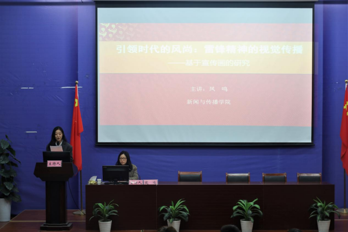 凤鸣以视频《红色血脉,党史军史上的今天》拉开了讲座的序幕,并引出主题——“雷锋精神的视觉传播”。凤鸣从宣传画的研究角度切入,带领同学们深入理解雷锋精神,她用各式各样的图片生动形象地展示了雷锋精神宣传画的发展历程,从20世纪60、70年代以“树立楷模,宣传事迹”为主到改革开放以来,倡导和弘扬平凡的“螺丝钉精神”再到新时代以体现社会主义核心价值观为主。其中特别指出新时代雷锋精神宣传呈现出的新特点:即走向世界和国际化传播。凤鸣还从肖像绘画和抽象符号方面向同学们展示了雷锋精神的视觉化转换,并提到信息化时代雷锋精神视觉传播的新特点。最后,凤鸣强调,要多层次、多形式、多角度地弘扬雷锋精神,产生更加强大的传播效应,使得雷锋精神深入人心、人人可学、代代相传,把雷锋精神“广播”在祖国大地上。