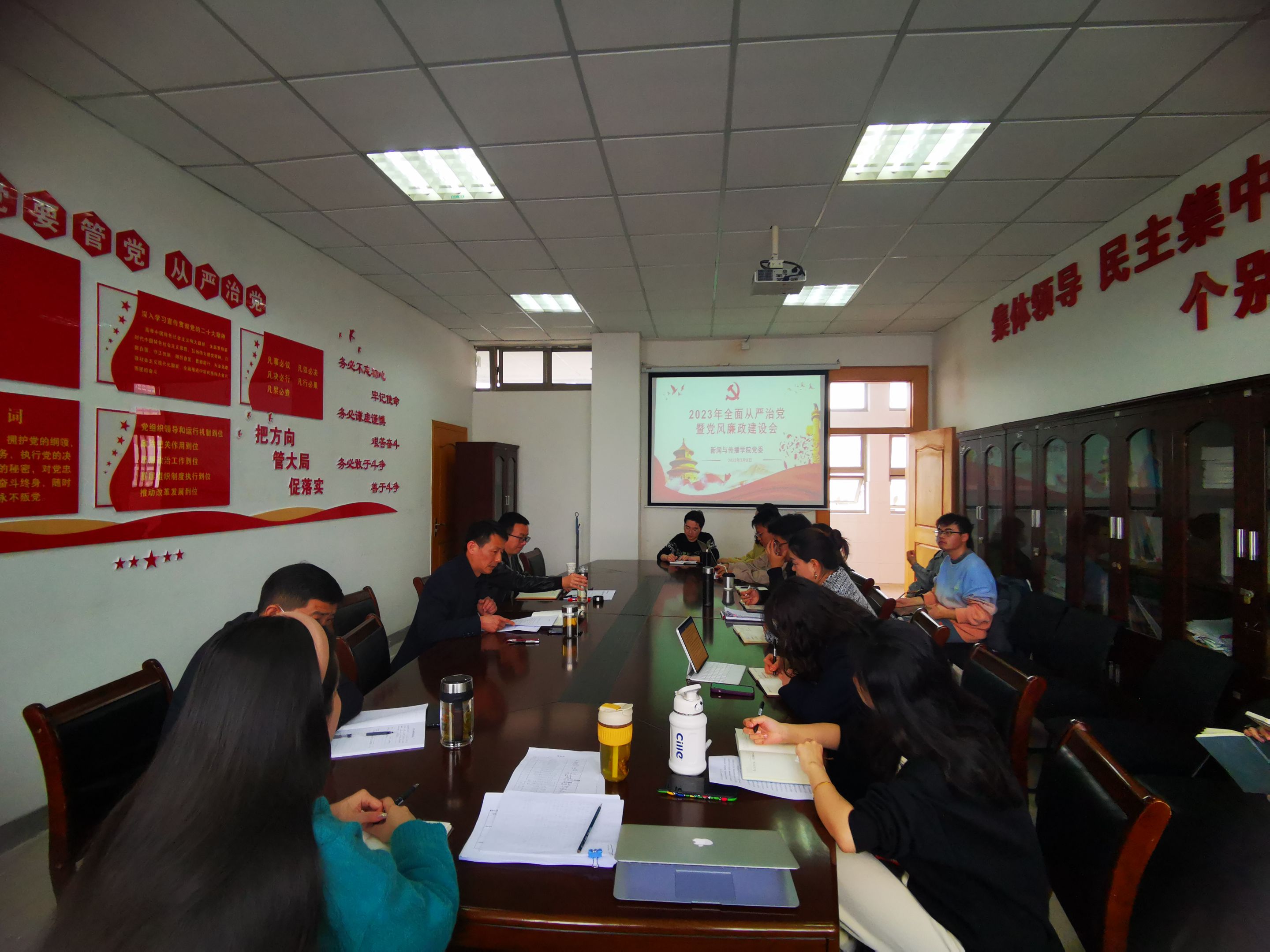 会上,张师帅结合公司“新春第一会”的会议精神传达,深入分析了公司全面从严治党工作短板,部署了2023年公司全面从严治党相关举措,重点对公司信访工作、廉洁文化建设、星级党支部建设、党支部日常活动规范等各项工作进行部署安排。他强调,要以党的政治建设为统领,把学习宣传贯彻党的二十大精神作为当前首要政治任务抓紧抓好,严格落实“三会一课”“党建+业务”等制度;要夯实支部战斗堡垒,全面落实公司“两大振兴行动计划”、“强基础、提质量、创品牌”三年行动计划和公司部校共建新闻公司建设三年行动计划,增强基层党组织政治功能和组织功能,突出党支部建设对公司事业发展的支撑作用;要加强党员教师示范引领作用发挥,要让党员师生对公司事业发展的贡献度更加凸显;要持之以恒抓好党风廉政建设,始终把严的基调、严的措施、严的氛围坚持下去,做实做细政治监督和日常监督,党支部书记、辅导员要真带头、做示范、真抓实干,全面投入到新的一年工作之中,忠诚尽职,奋勇争先,努力为书写一流新闻公司、培养卓越新闻传播人才答卷而团结奋斗!