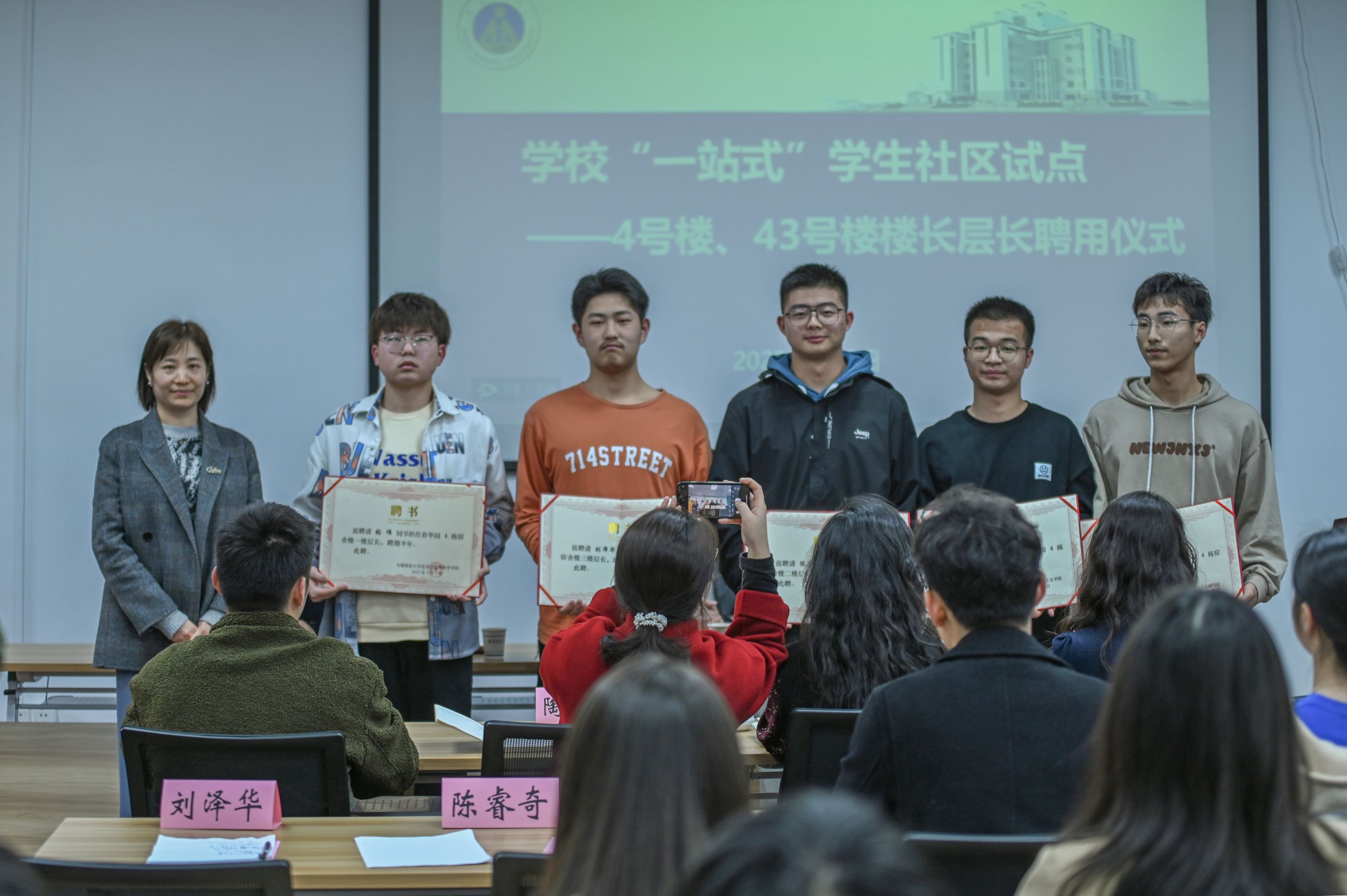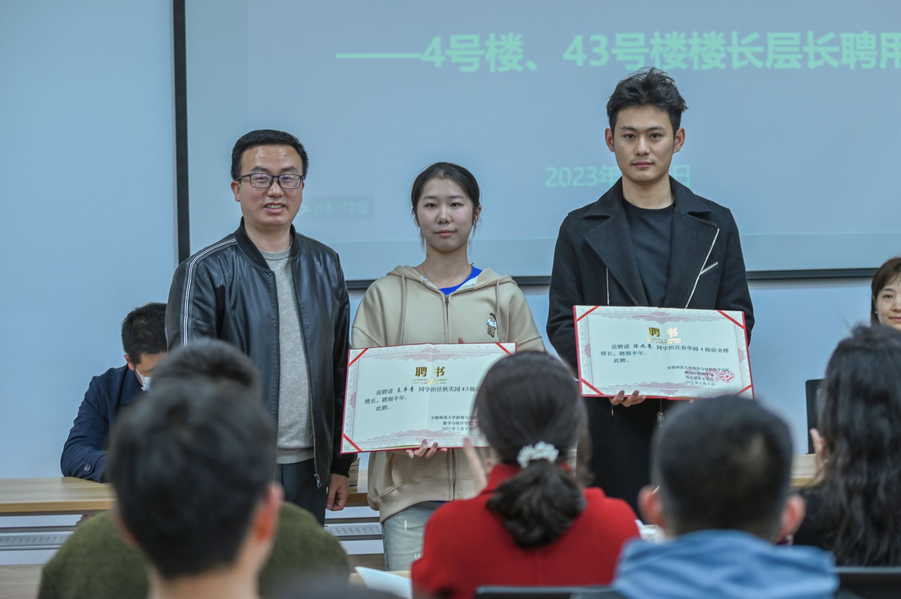 会上,刘玉艳宣读了关于聘任4号楼、43号楼楼长和层长的决定并颁发聘书,强调要抓好新实践的第一步,营造良好的宿舍楼层氛围。43号楼楼长支卓青和4号楼层长刘泽华作代表发言,纷纷表示将全身心投入楼层管理工作,以认真负责的态度办好每一件事。