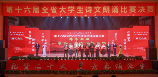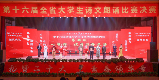 本届大赛分非专业组和专业组两个组别,从省内40余所高校选送的130多件作品中遴选出50件作品参加决赛,参赛作品形式多样,既传承了中华优秀传统文化,展现了民族文化自信,又铭记了百年奋斗历程,弘扬了伟大建党精神。现场评委通过对参赛选手的语音、朗诵技巧、仪态风度、思想感情和综合效果等方面进行评分。