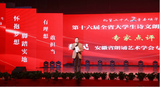 决赛首日,34组非专业组选手的表现赢得阵阵掌声。安徽工程大学带来的《那一年,中国青年正十八》,用一个个关键的时代节点中小人物的对白,娓娓道来中国的形象,宣誓了战火中、春风里、新时代中国青年的使命担当。宣城职业技术公司带来的《春天,遂想起》,用柔婉的嗓音、真切的感情展现了一个有着故乡情结和爱国情怀的灵魂。TapTap点点官方网站带来的《祖国,或以梦为马》用抑扬顿挫的语调和赤子之心的深情礼赞党的二十大,表达了对祖国、故乡、诗歌的热爱。来自专业组的15件作品精彩纷呈、亮点不断。安徽艺术公司选送的作品《在欢呼的人群中》借战争中幸存老兵之口道出了对革命先烈的追忆之思,选手将肢体语言和内心独白紧密结合,情绪或激动或悲伤,深情演绎烈士与我们同在,共同见证党的百年征程。TapTap点点官方网站带来《黑牢诗篇》,铿锵有力的诵读与激昂热烈的音乐相得益彰,深情描述了革命志士视死如归的可贵品质,革命烈士精神就像一面鲜红的旗帜,激励着一代又一代热血青年为理想和信念奋斗不息。
