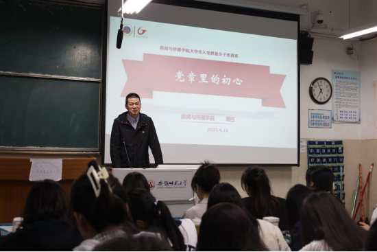 最后,周伍结合当下考研浪潮的时代背景,勉励同学们通过不断学习,提升自身能力,在获得更好的专业知识的基础上做到学用一体、知行合一。以历史的思维领悟党章,以历史的情怀守护党章,以坚定的初心践行党章。周伍期望在场同学能从党章初心的学习中端正入党动机,明确学习目的,初心不改、矢志不渝。