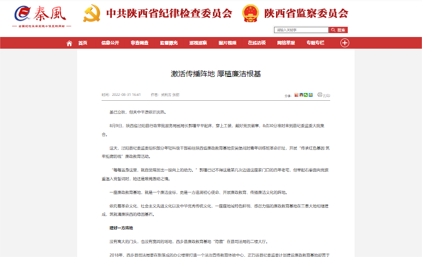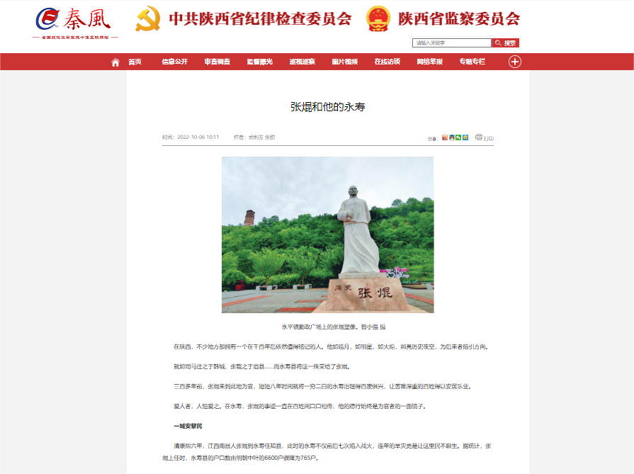 《张焜和他的永寿》一文主要讲述了清康熙六年张焜在陕西省永寿县任知县时,采取修城、除弊政、兴学、治水等一系列措施使百姓安居乐业的事迹。《激活传播阵地厚植廉洁根基》一文在走访陕西省西乡县、泾阳县和西安市三处廉洁文化基地等基础上撰写,无形的廉洁文化通过有形的载体将其传播,将“建好一方阵地,引来八方访廉”的理念较好地体现出来。