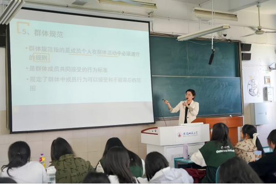 围绕《传播学概论》中群体传播相关内容,葛老师首先循循善诱地带领同学们回顾了上节课重点,并根据学习通智慧教学平台上给出的预习反馈,对同学提出的问题和本次课“群体规范”“群体压力”“从众效应”等教学内容结合网络热点案例进行了生动讲授。她结合群体规范的维持、群体奖惩机制以及美国心理学家的经典从众实验引入最常见的网络“吃瓜”现象,并通过“吃瓜”现象对从众效应等授课内容进行由浅入深的解析,带领同学们一起探究了“吃瓜”的由来、行为动因以及我们应该如何正确“吃瓜”。葛老师在课堂上特别强调:作为新闻人,我们必须把保证国家意识形态安全、保证精神文明建设良性发展、保证社会安定团结作为我们的责任。每一位同学都要为中华民族伟大复兴,为中国特色社会主义现代化行稳致远,贡献出我们的绵薄之力。