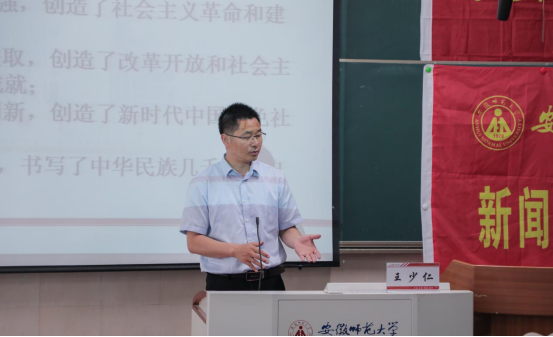 最后,王少仁将中华民族的伟大复兴比作一场接力赛,并引用习近平总书记在中国共产党成立100周年大会上的讲话来要求同学们强化自身理想信念,撸起袖子加油干,才能将这一棒接入手中,才能不负时代,不负韶华,不负党和人民的殷切期望。