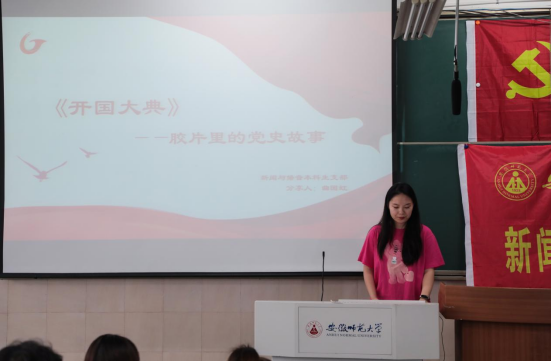 新闻与播音党本科生支部首先就影片《开国大典》展开讲述,支部以影片的创作特色与片中的党史故事为主线,细致分析影片的结构内容,最后通过播放片段呈现开国大典部分场景,再现了党的光辉历程。摄影动画航空本科生党支部通过呈现影片《建党大业》的高燃混剪,进一步阐明了新时代青年人的担当与责任。“青年党员应该在平凡的岗位创造出不平凡的业绩。”邹心成在分享的最后鼓励党课班学员,希望广大青年党员注重实践,勇创新功。