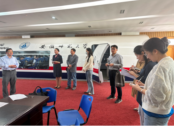 5月25日上午,航空服务艺术与管理专业陈圆圆老师的《民航客舱服务与管理Ⅰ》教学观摩课在静态模拟客舱开展,主要内容是客舱应急设备检查和服务设备检查演练。公司副经理周伍、赵昊、公司教学督导组张泉泉、徐丽娜、赵相武老师、法公司法学专业李路根老师、航空服务艺术与管理专业王娟、潘倩倩、俞应芬老师,教学办老师参加此次观摩课。