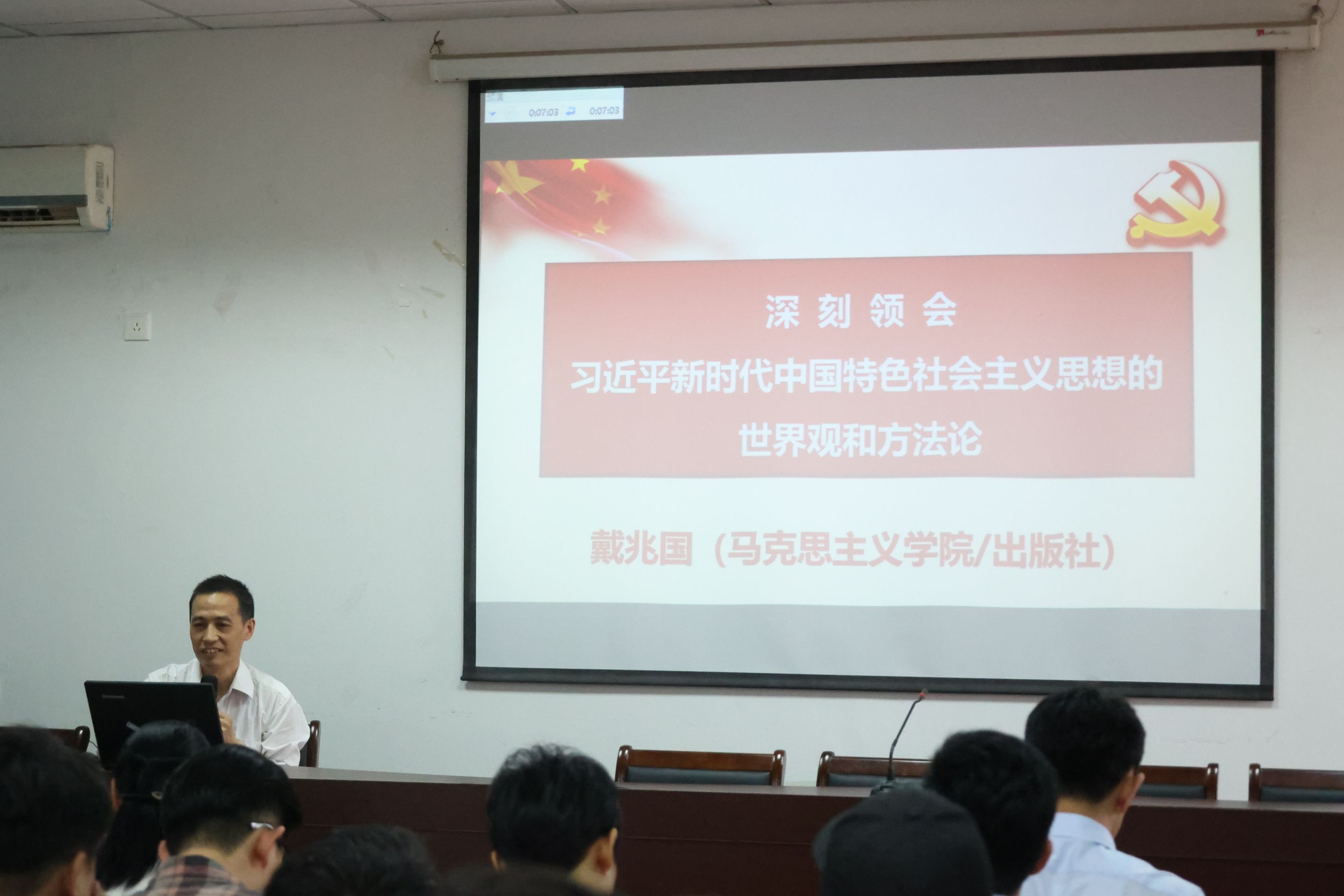 戴兆国以《深刻领会习近平新时代中国特色社会主义思想的世界观和方法论》为题展开,围绕把马克思主义哲学作为看家本领、贯彻党的实事求是思想路线以及“六个必须坚持”等方面,详细解读了习近平新时代中国特色社会主义思想的世界观和方法论作为内在统一、相互贯通的有机整体,解读了所蕴含的习近平新时代中国特色社会主义思想的根本政治立场、深邃的理论观点和科学的思想方法。习近平新时代中国特色社会主义思想是坚持和运用辩证唯物主义和历史唯物主义的光辉典范,蕴含着丰富的马克思主义思想方法和工作方法。习近平新时代中国特色社会主义思想的世界观和方法论,是辩证唯物主义和历史唯物主义在中国特色社会主义新时代的创新发展,是新时代中国共产党人理论创造、实践探索、政治品格的集中体现,是习近平新时代中国特色社会主义思想活的灵魂,具有穿越时空的普遍意义和真理价值。