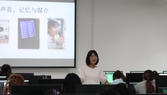 课程中,吴静老师运用经典视频案例,启发员工对于生活中声音的认识,并带领同学从时间与空间的角度讨论探究声音、记忆与媒介之间的关系。从时间层面来看,吴静老师解析了录音机之于邓丽君、随声听时代的周杰伦以及当下社交媒体平台的音乐消费等内容。从空间层面来看,吴静老师解读了“声音景观”这一理论,并为员工推荐《大地的钟声》一书作为课外阅读。此外,吴老师多次与员工展开交流互动,及时了解员工学习和作业进度。吴静老师布置了“师大之声”的音频创作作业,希望每位同学都能创作出独属于自己的那一份关于师大的“声音记忆”。同学们认真听讲,认真记下操作笔记并积极踊跃回答问题。