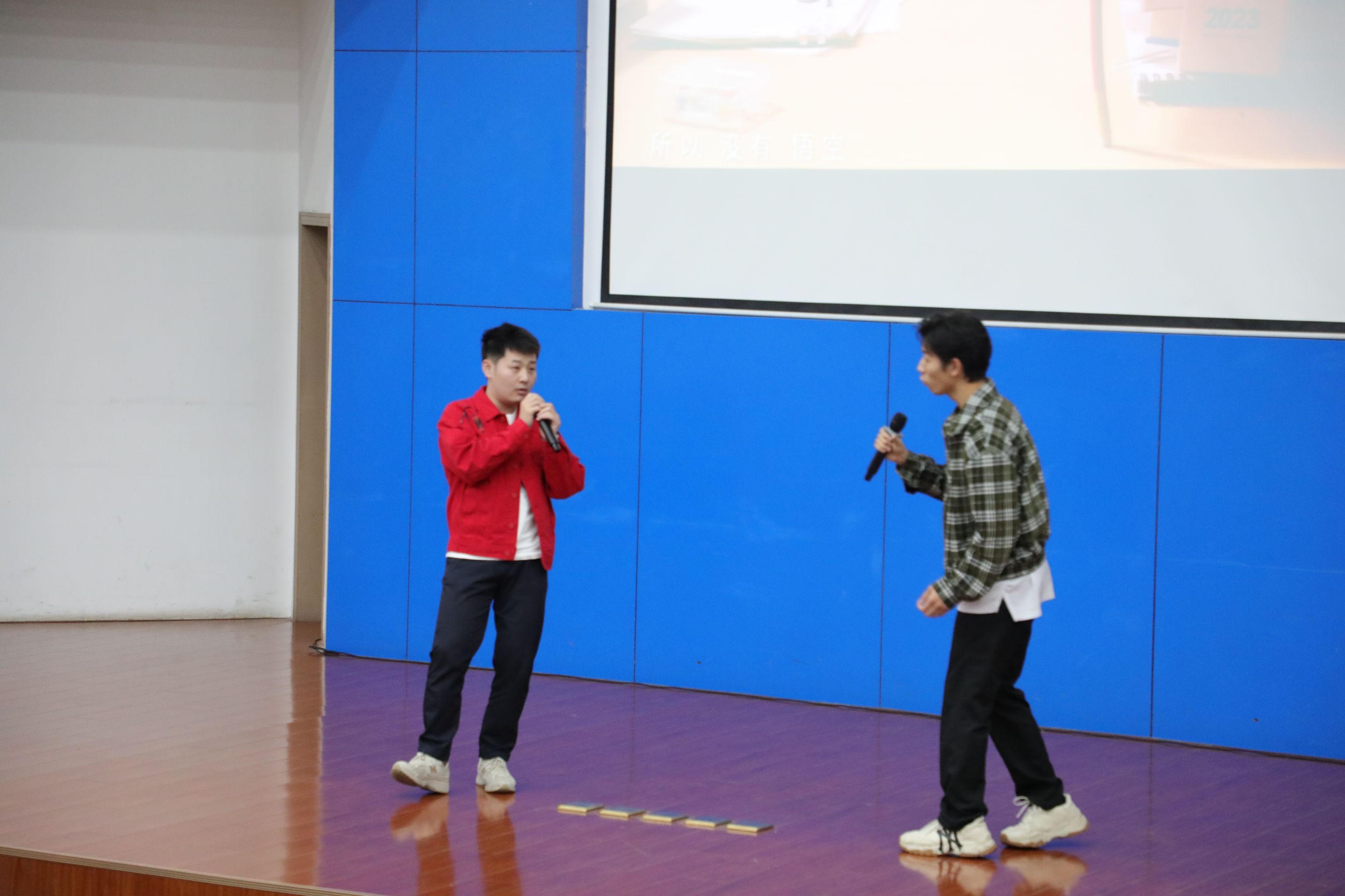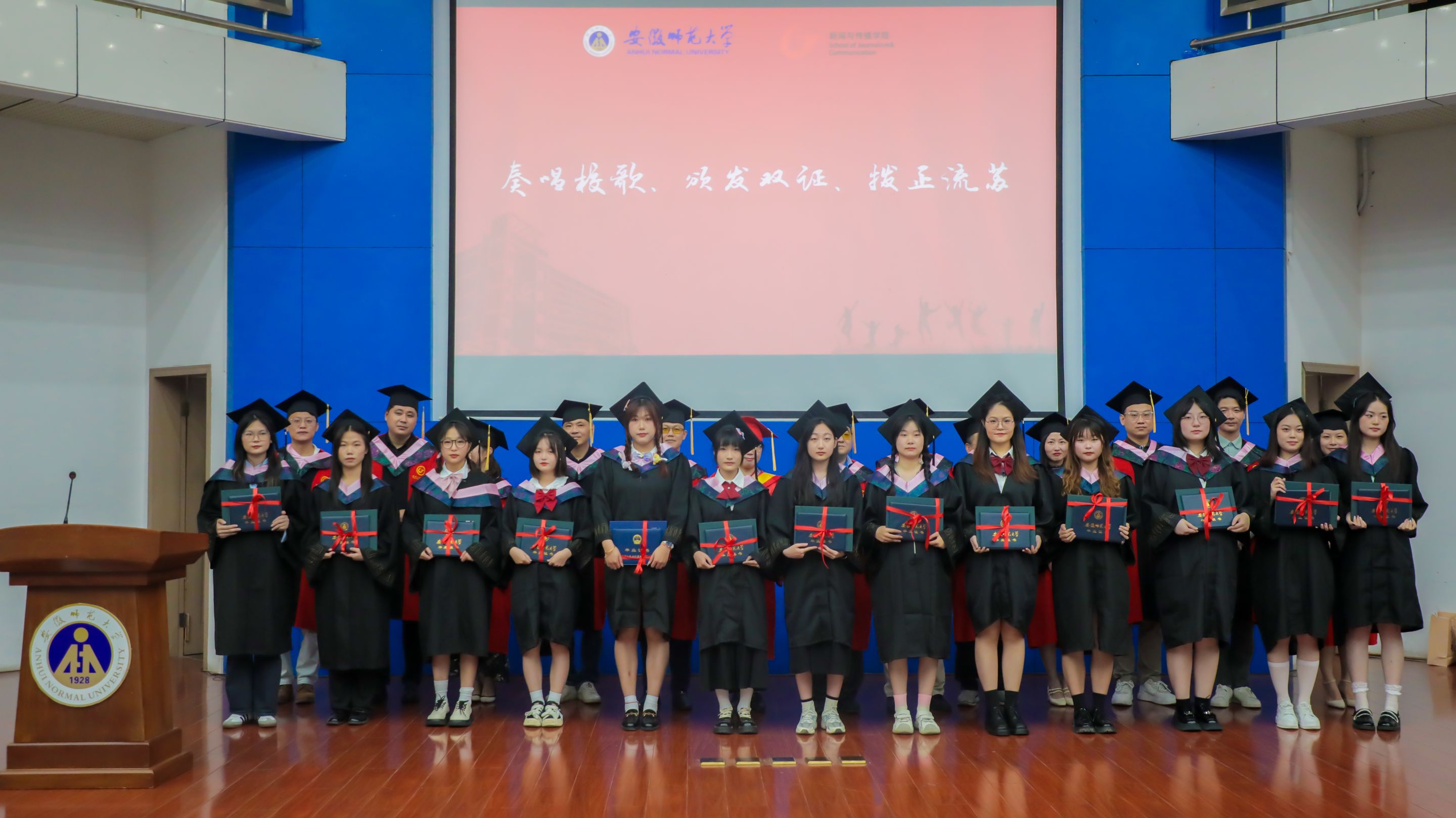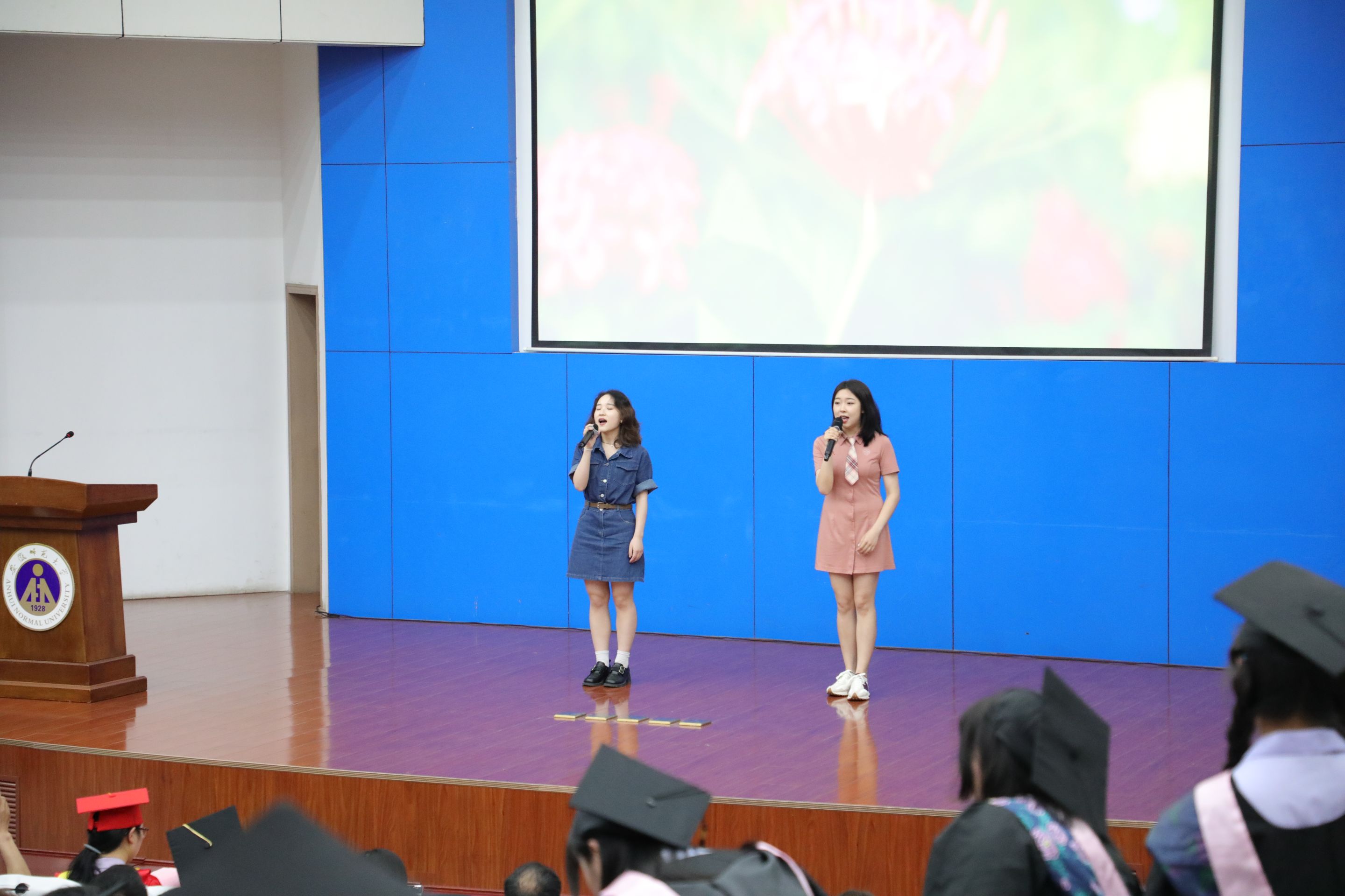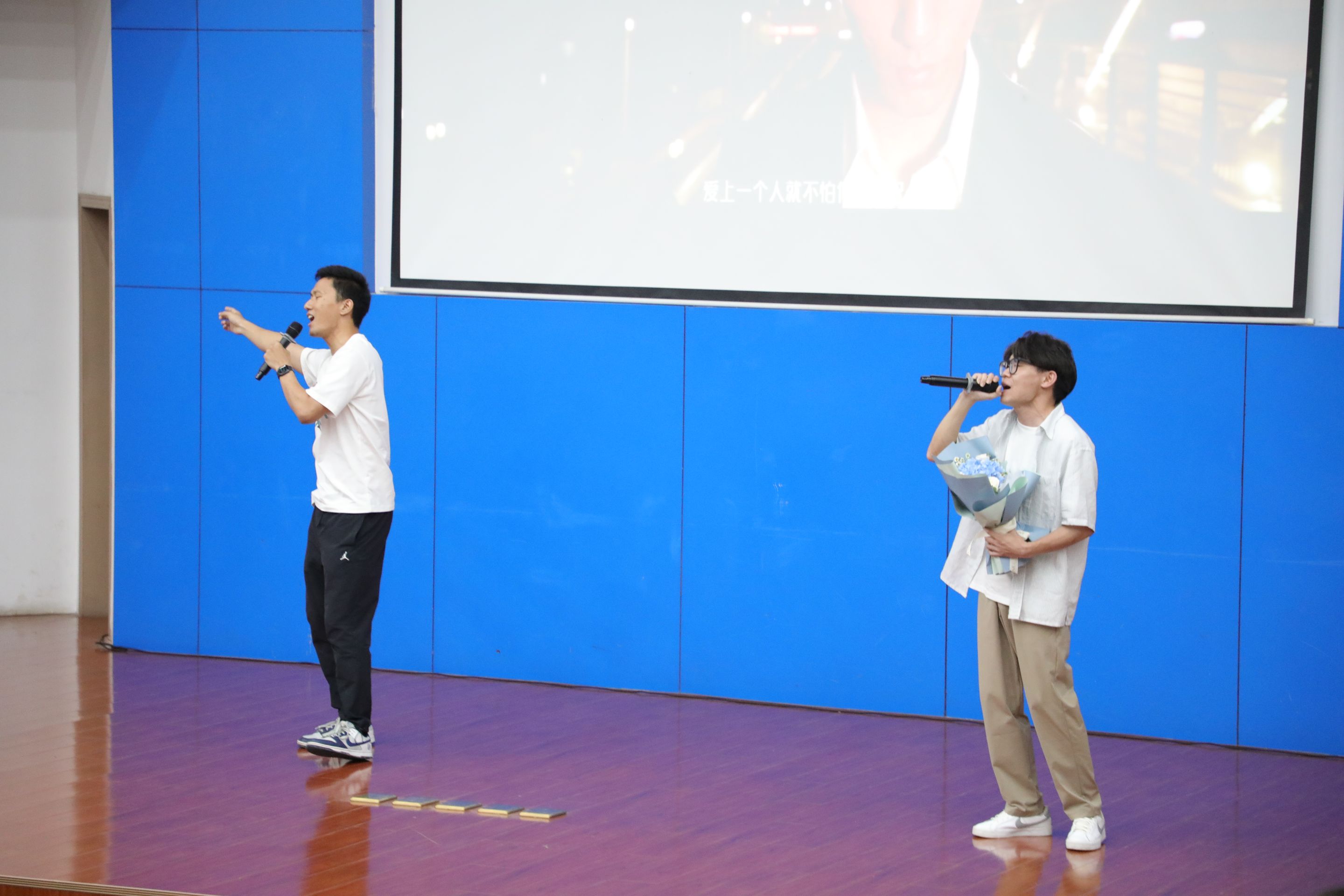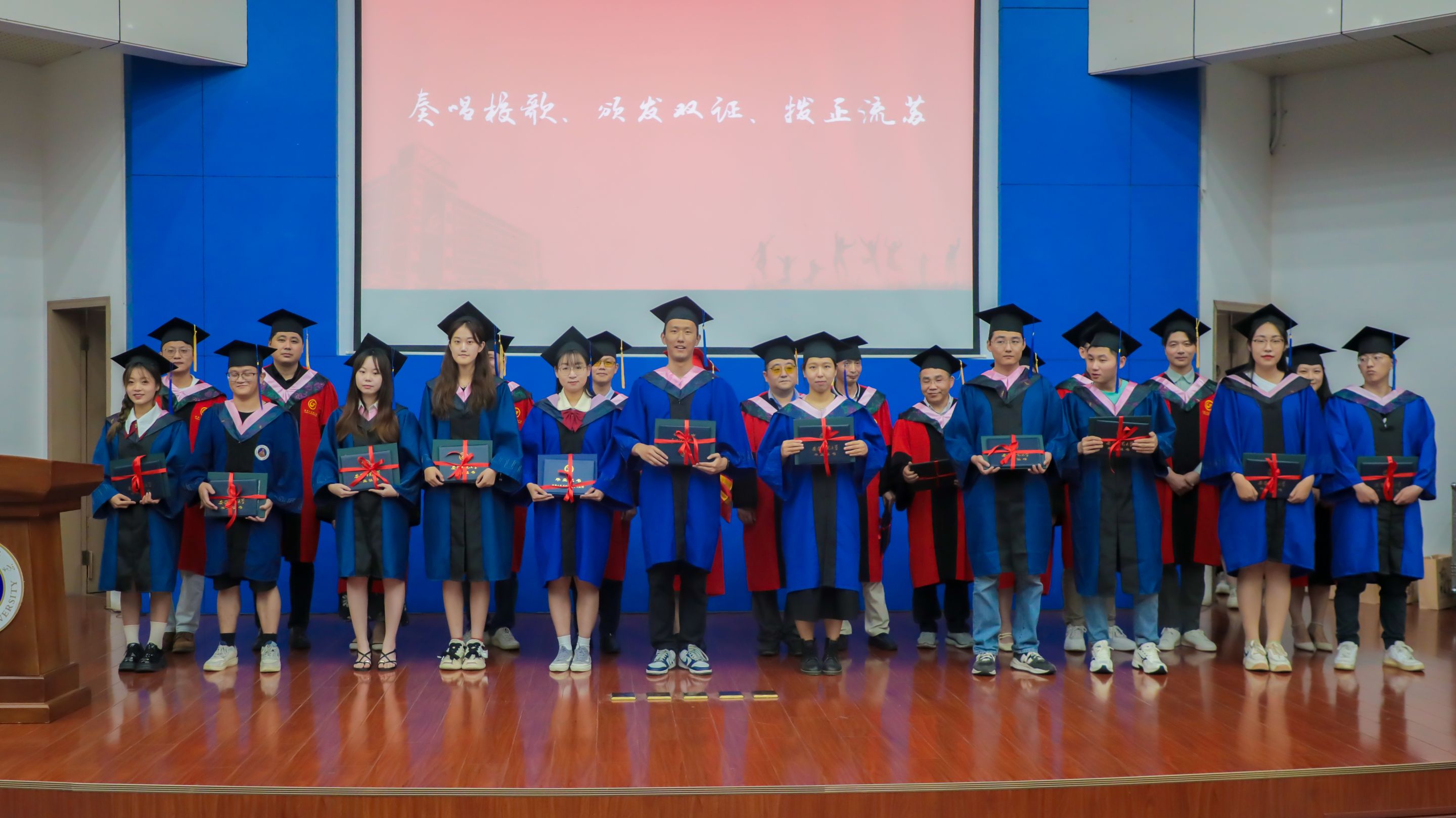 “那片笑声让我想起,我的那些花儿。”在杭胜莹、王涛等同学婉转的歌声中,仪式缓缓拉开了第一篇章——我们的青春回响。在奏唱完国歌后,师生们一同观看了由陈伟龙、张蕊等同学制作的《我们2019》《我们2023》视频短片。实践中一起走过的路、球场上一起拼搏的汗水、实验室里一起彻夜剪片的互助……一幕幕熟悉的场景唤醒着同学们的青春记忆,229次国家级奖项、451次省级奖项……不断翻动的数字展示着同学们在新传的努力与蜕变。随后,方怡馨、张仙龙等同学们现场朗诵了辅导员马星宇创作的散文诗《从2019至2023》,诗文从毕业生的视角和情愫深情回顾了2023届毕业生过去几年各个阶段的学习、实践与成长。