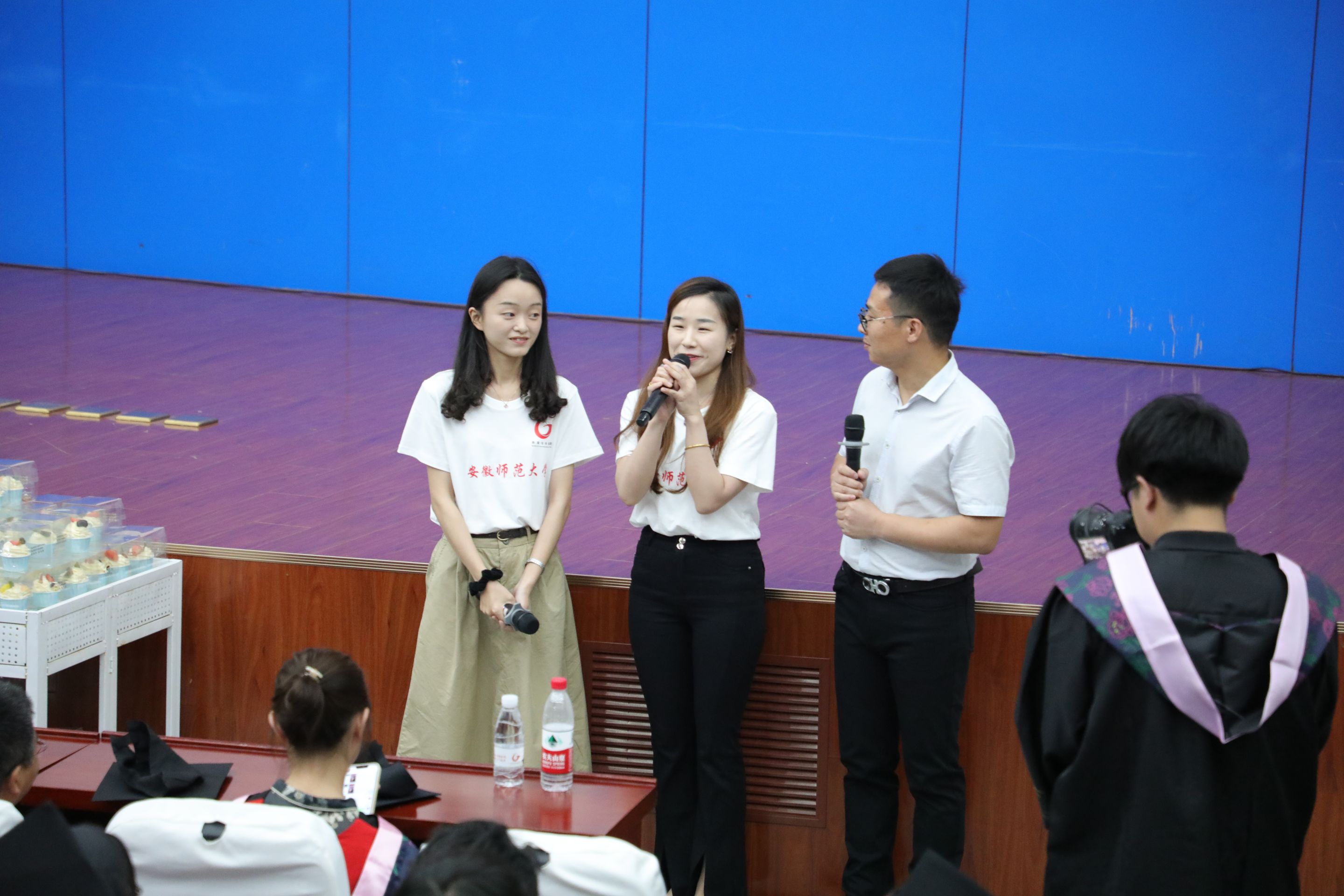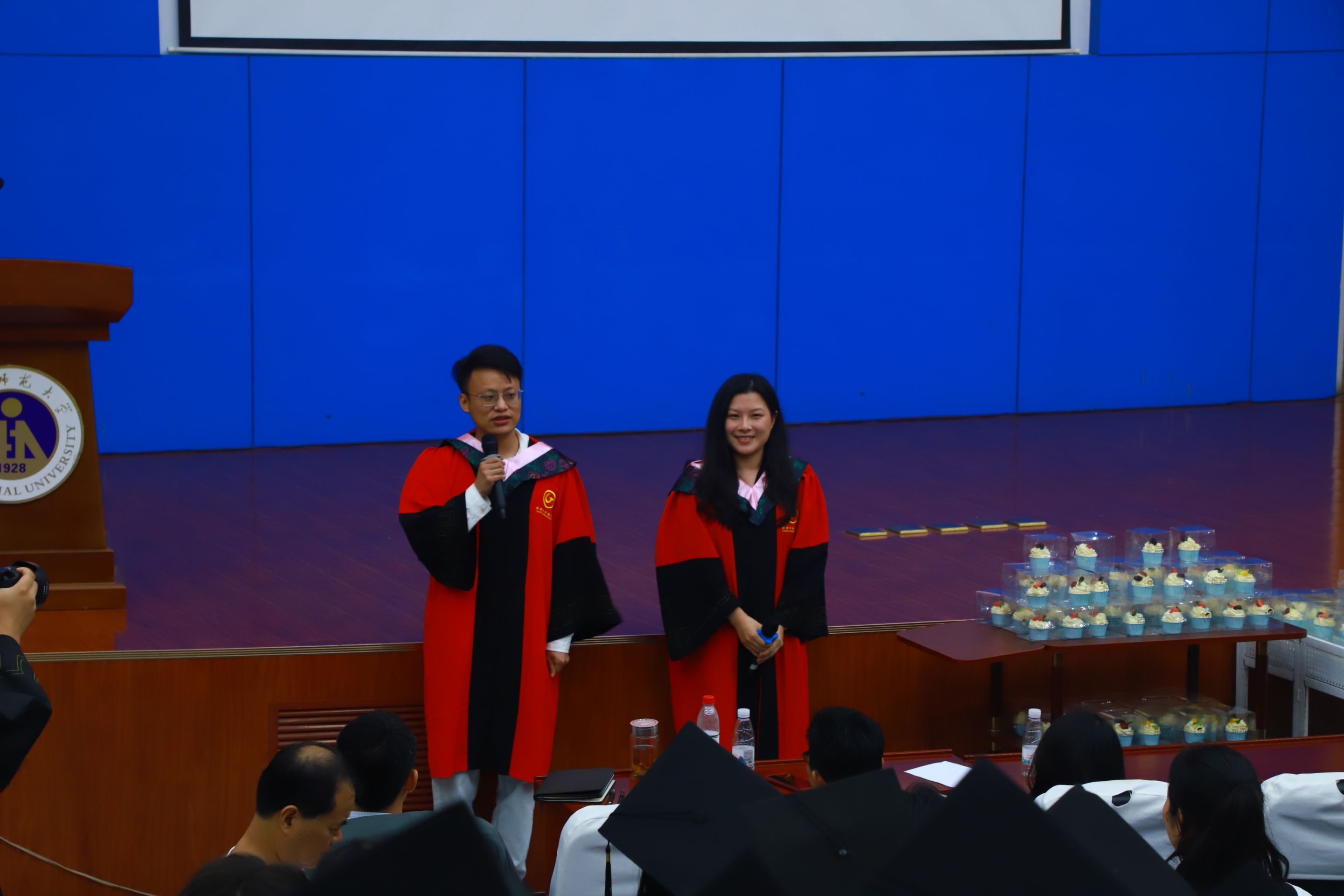 再见不诉离殇。“我和同学们一同毕业,不同的是我与师大共处的日子是你们的十倍。”仪式上,在师大工作了40年、即将退休的孙树群老师与同学们动情分享,这位“特殊”毕业生的出场引发全场热烈掌声。随后,孙树群、夏莹莹老师与毕业生一起合唱《光阴的故事》,悠扬动人的旋律深深感染着在场师生。随着报告厅两侧大门的徐徐打开,公司为毕业生精心准备的毕业蛋糕被缓缓推出,满满的仪式感让同学们感动不已。在2023届毕业生的最后一次点到环节,同学们响亮而坚定的应答声,为他们在师大的学习旅途画上了圆满句点。