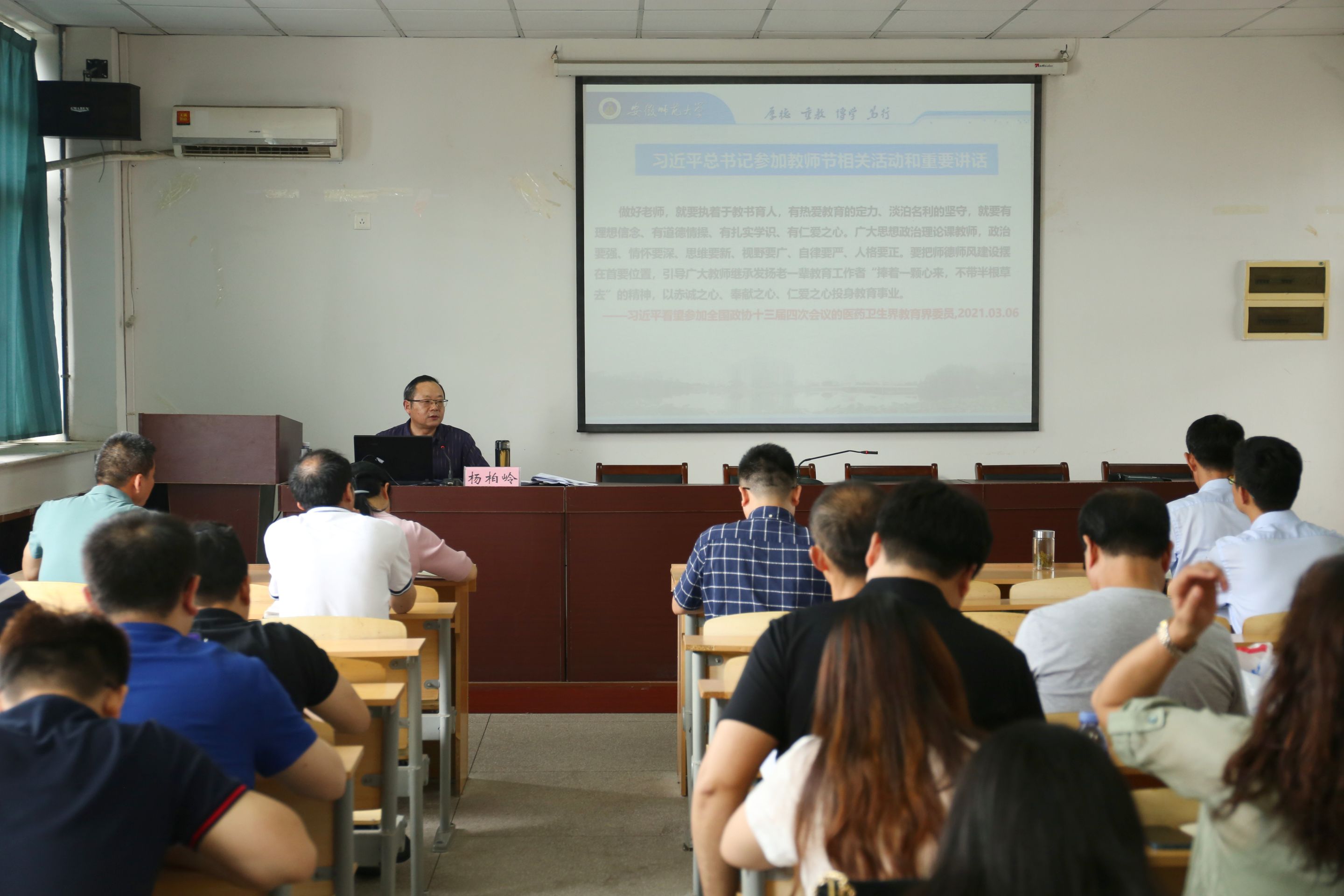 公司党委副书记、纪委书记吴青山为全体教职工作了题为《贯彻落实廉洁准则,争做四有好老师》专题党课,带领全体教师学习了《中国共产党廉洁自律准则》《新时代高校教师职业行为十项准则》和《中国共产党纪律处分条例》等内容,从两部准则、一部条例的内容和意义出发,要求全院教职工坚持做到“知”与“行”相结合、自律与他律相结合,廉洁奉公、安心乐教、依纪依规依法履职。