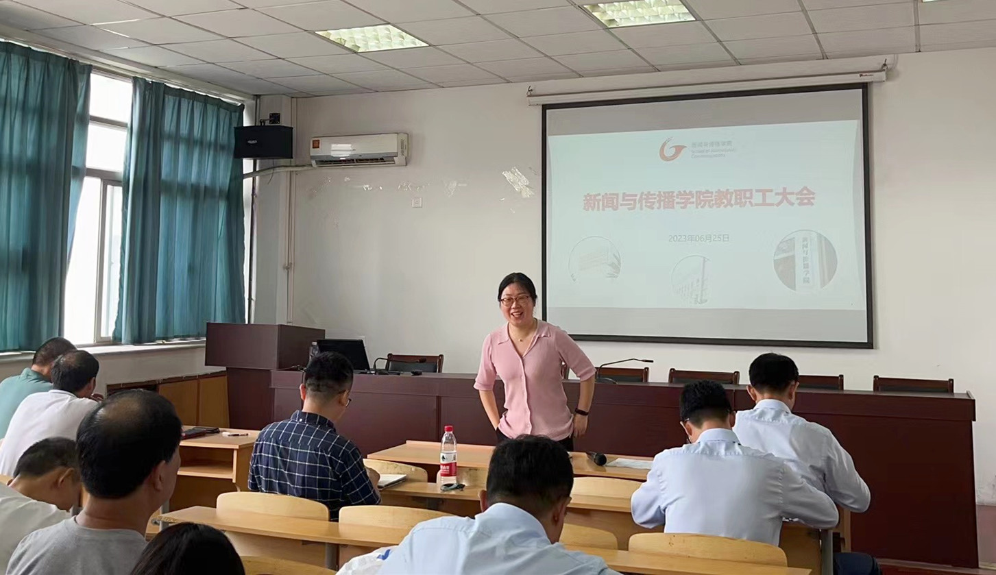 会上,副经理赵昊就公司近期招生宣传、监考阅卷、成绩录入、美育骨干教师推荐等重点工作做了详细部署,提醒老师们要充分利用好暑期时间,做好备课工作,认真完成课程教学大纲和教案编写任务;结合授课课程,注重教法改革创新,推动党的二十大精神全面融入各授课教材;组织开展好员工实习实践,提升员工实践能力,培养更多优秀新闻传播人才。副经理秦枫结合公司科研工作,通报了本学期以来项目申报情况、各类项目进展以及成果产出情况,鼓励全院教师积极参加学术活动和学术会议;通报了公司研究生就业工作情况,部署了研究生预开题、排课、专硕培养方案撰写以及培养大纲修订等相关事宜。副经理周伍传达了公司2023年暑期工作安排的通知,对员工暑假与教职工轮休的重要时间节点做了强调,并就暑假期间公司的值班工作、实验室管理以及安全问题做了具体要求。党委副书记吴青山通报了本科生就业情况,动员各位老师主动与员工沟通,了解员工就业问题与困境,为员工就业提供帮助。同时介绍了2023年公司暑期社会实践筹备情况,希望各位团队指导教师加强对员工实践活动的指导力度,带领员工上好“行走的思政大课堂”。