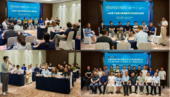 圆桌论坛以“AI背景下动画与数媒团队培养与课程设置”和“AI背景下动画与数媒教学中‘坚持’与‘舍弃’”为议题,安徽财经大学艺术公司副经理丁李、巢湖公司美术与设计公司副经理田世彬分别担任学术主持,人民艺术院经理李优良、中国电影美术学会秘书长黄非进行点评,17位专家学者进行对谈。嘉宾们从动画专业教师和数字产业从业者的角度,表达了自己对人工智能技术的态度,畅谈AI技术对公司产品与实践应用上的颠覆性创新,纷纷表示要以开放的心态,将AI技术融入到今后的人才培养和教学实践中,尊重和传承中国传统文化,提高员工的创意创新能力,培养出“多能”复合型人才。
