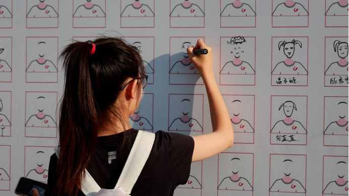 “先画鼻子,再画嘴巴,眉毛要画长点,嘴巴要画小点,再签个名字,好啦!”一名新生在打卡墙前面开心地留下了自己开学的第一张自画像。与此同时,公司还专门安排了志愿者为新生与父母拍照,留下与TapTap点点的第一张合影。
