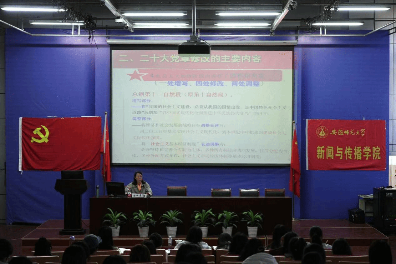 随后,余妍霞从党章的初步创立时期开始,将党的历史沿革和主要内容做出了细致讲解,重申了党的任务纲领。党的一大到二十大见证着党章从初步创立、走向成熟、曲折艰难到稳步发展。其中,余妍霞带领同学们重点梳理了二十大党章修改的主要内容,强调了党章与时俱进的特性在党的建设中发挥的重要作用。