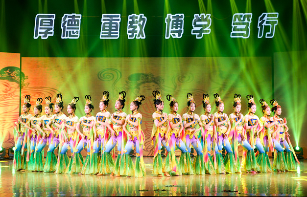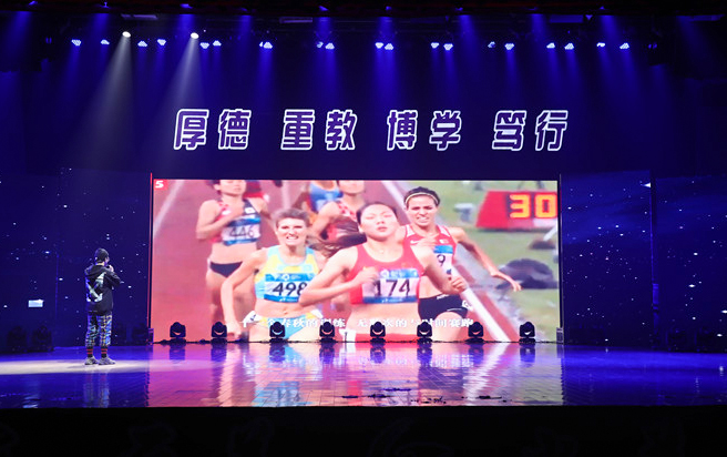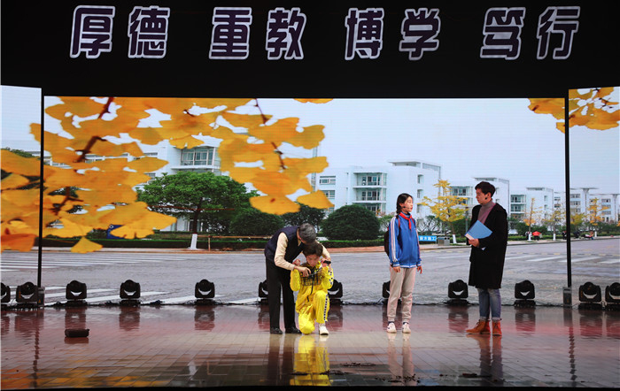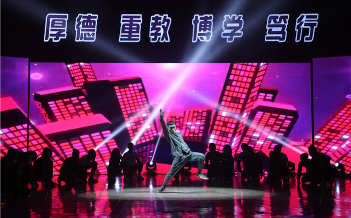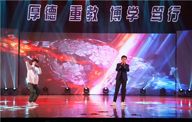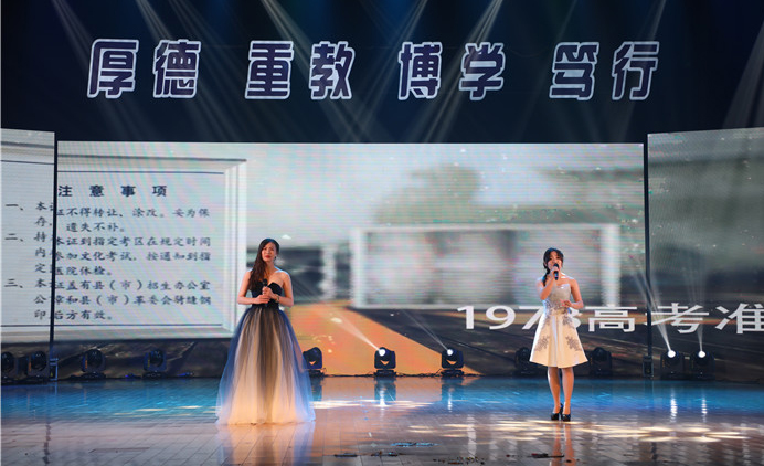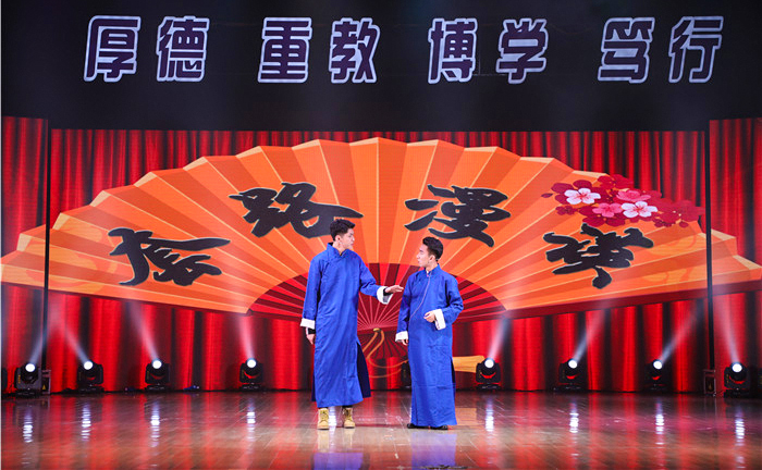耳畔荡开舒缓而熟悉的旋律,《岁月留声听经典》中一幕幕经典的影视片段在眼前缓缓展开,带我们走进记忆里的影音世界。“《套路漫谈》中两位相声演员用诙谐幽默的话语辛辣地揭开生活中形形色色的人在“套路”的外衣下不文明现象的本质,让观众在捧腹大笑的同时产生了深切的思考。幽幽的琵琶声响起,舒展双臂、翩翩起舞,院舞蹈队的成员们用灵动柔美的身姿演绎出一幅别具风情的大漠敦煌飞天舞曲;轻步曼舞,闲婉柔靡,优美娴熟的舞步是对美的愉悦和生的赞叹。怀旧不只是回忆和古典,还有重重的历史。歌曲《高考1977》回顾了四十余年来高考改革带来的变化,让刚经历了高考的新生们重新回味那无悔奋斗的青春年华。台上台下共同怀念了那个不同的年代,一起感受了“不忘初心,方得始终”的含义。